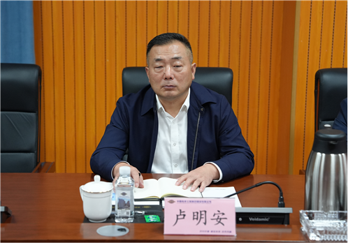 趙亮對盧明安一行的到訪表示歡迎,并介紹了公司發展歷程、戰略規劃、市場布局、技術資源優勢及近年來取得的成就。他說,中國安能一局深耕水利水電建設行業六十余年,先后參加三峽工程、西電東送、西氣東輸等國家重大能源工程建設,是一支技術精湛、裝備精良的能源基礎項目建設生力軍。趙亮還回顧了公司與安能集團共同參與岳陽市華容縣團洲垸堤防封堵、加固項目建設,為岳陽防汛抗災救援工作作出貢獻。他表示,希望雙方深入合作交流,加強優勢互補,攜手共創高質量發展新局面。