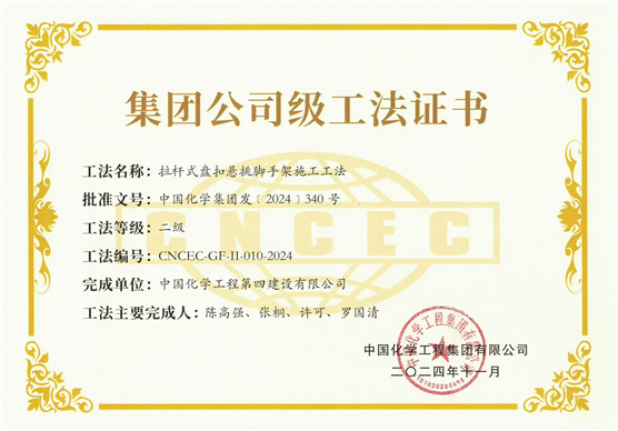 建筑工程公司“拉桿式盤扣懸挑腳手架施工工法”被認定為集團級工法