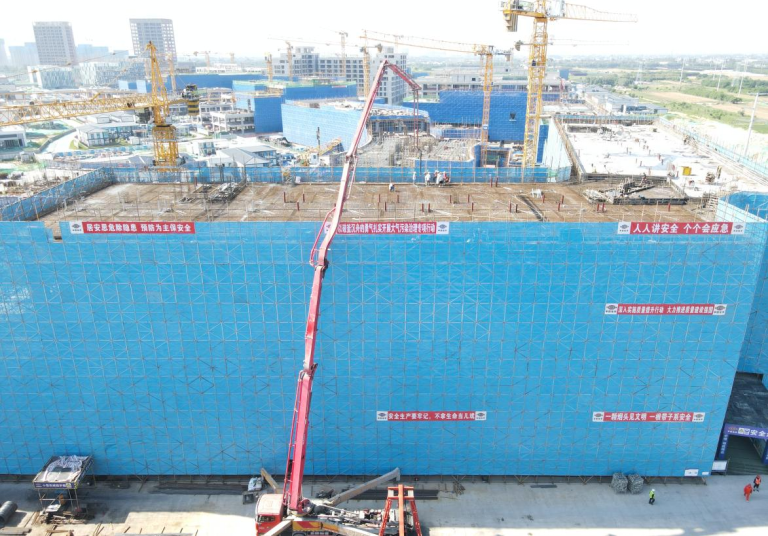近日,伴隨著混凝土嗡嗡的澆搗聲,由港晨公司承建的岳陽(yáng)自貿(mào)片區(qū)數(shù)字經(jīng)濟(jì)產(chǎn)業(yè)綜合體項(xiàng)目C1棟主體結(jié)構(gòu)封頂。
