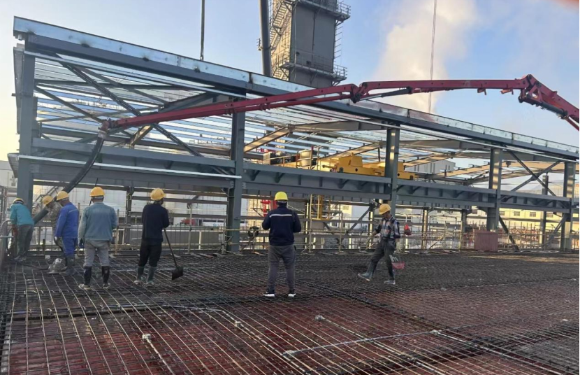 近日,隨著屋面板最后一車混凝土的澆筑完成,由華東公司承建的廣東河源杭氧空分項目配電房主體結(jié)構(gòu)順利完成封頂。